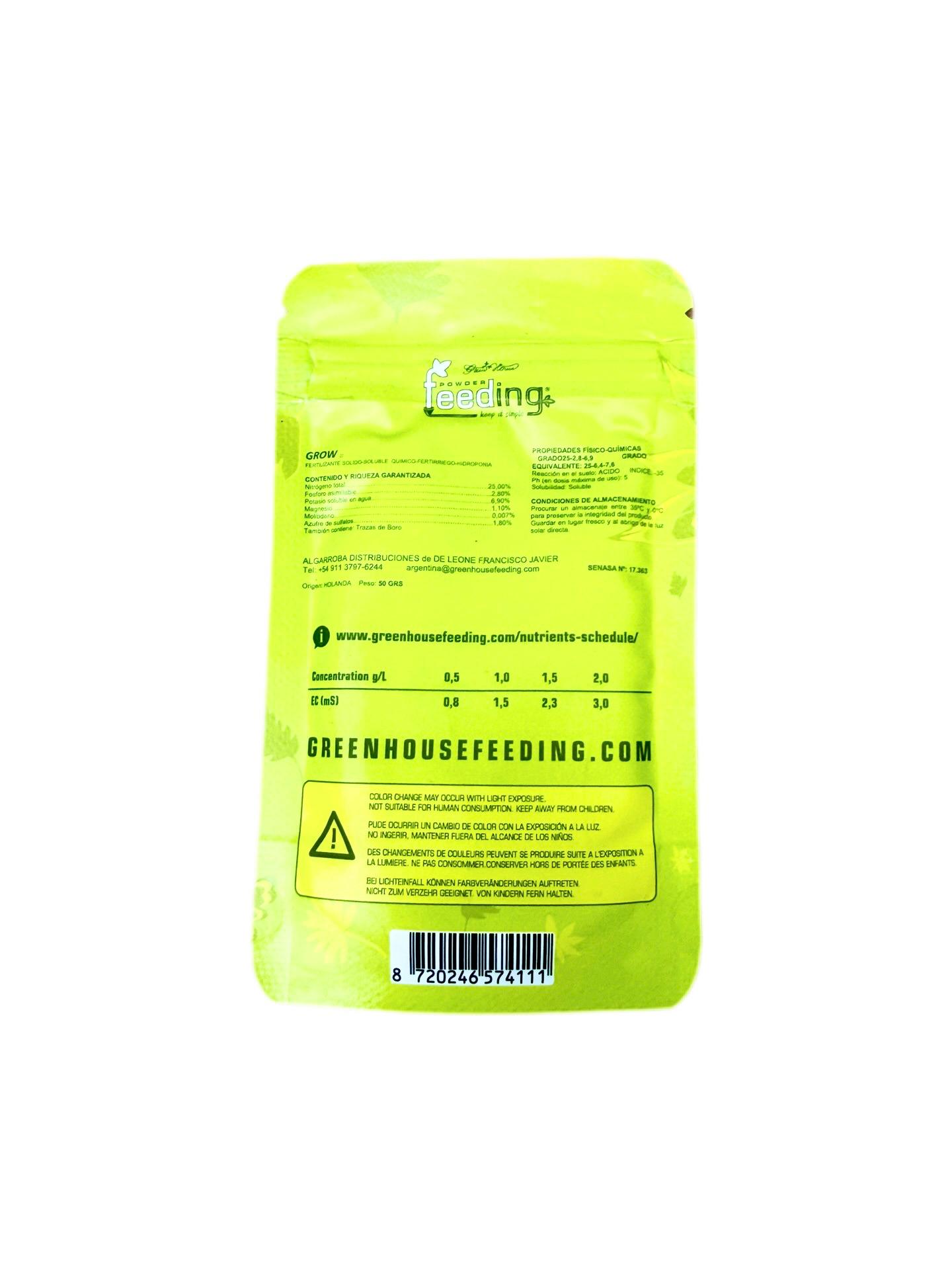 Feeding Grow es un fertilizante mineral en polvo formulado para la etapa de crecimiento vegetativo. Proporciona los nutrientes esenciales para un desarrollo vigoroso, favoreciendo la formación de raíces, tallos fuertes y un follaje sano. También puede utilizarse durante las primeras semanas de floración para acompañar la transición.